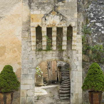 Surrounded by vines, pine and oak trees, it was built on rock. Once a troglodyte dwelling, then a medieval castle with a monolithic suspended staircase, it is one of a kind. The façades with the beautiful Renaissance windows are juxtaposed with architectural elements from the 19th and 20th centuries.