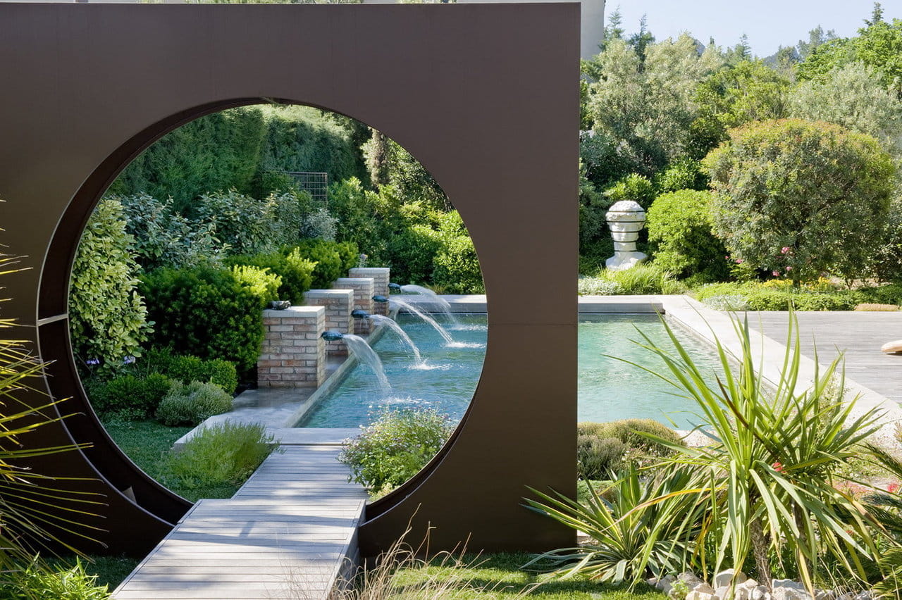 The gardens were designed and created on the site of the former parking area where lorries were once unloaded! Dominique Lafourcade has created an intimate Mediterranean atmosphere in the terrace area, making it a typically Provençal living space. An ultra-modern canopy connects the indoor and outdoor spaces.